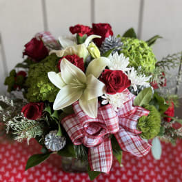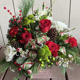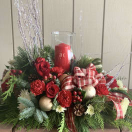 Price: $199.95 Stunning large Christmas Centerpiece with Pillar Candle Product Tags: Next-day Delivery